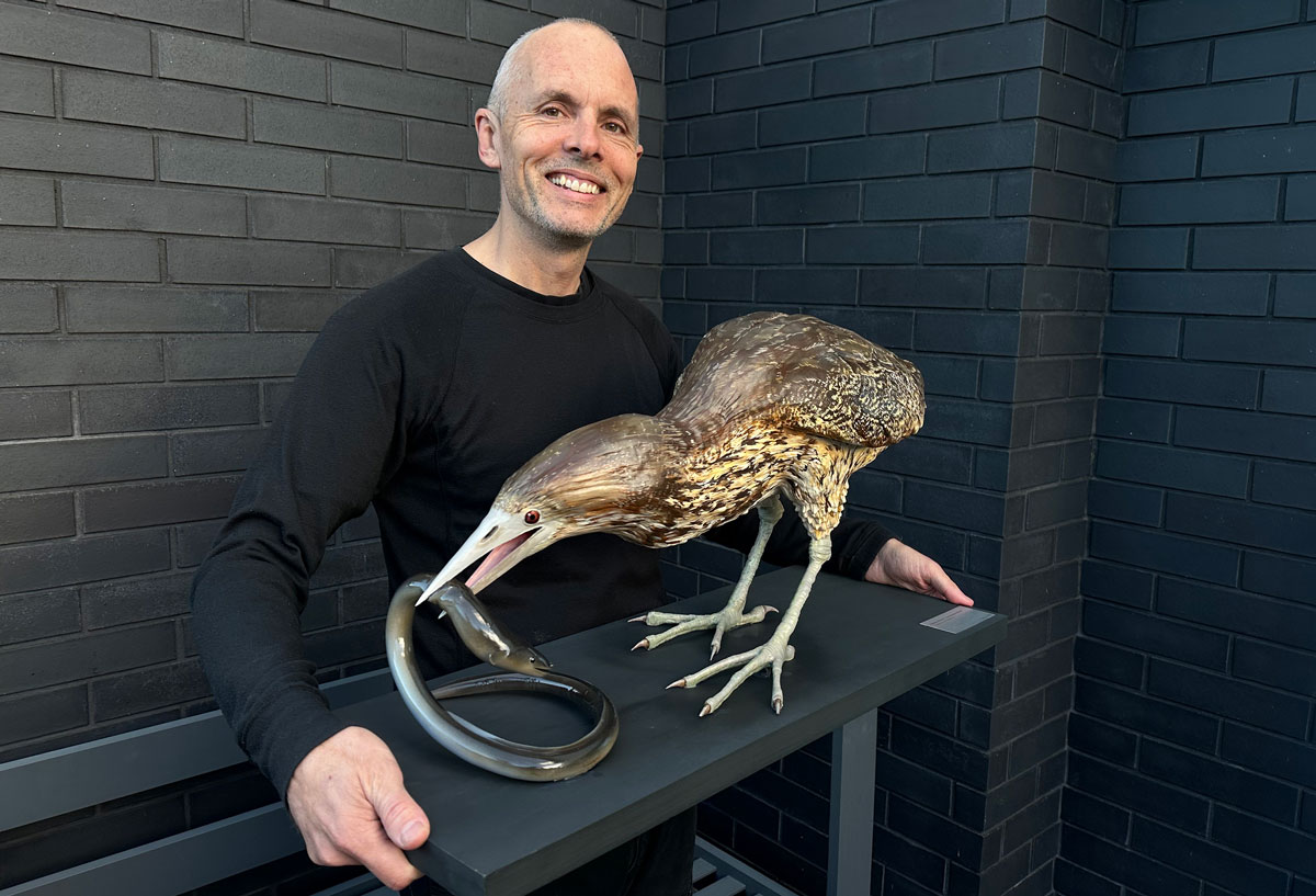 Matuku hūrepo are in serious trouble – they’re Threatened – Nationally Critical, with fewer than 1,000 adults left in Aotearoa. Despite being one of our largest wetland birds, they’re rarely seen. Over 90% of New Zealand’s wetlands have been drained or destroyed, leaving bittern with fewer places to breed, feed and hide. Hopefully, this model helps change that by bringing people face to face with a bird they may never see in the wild.